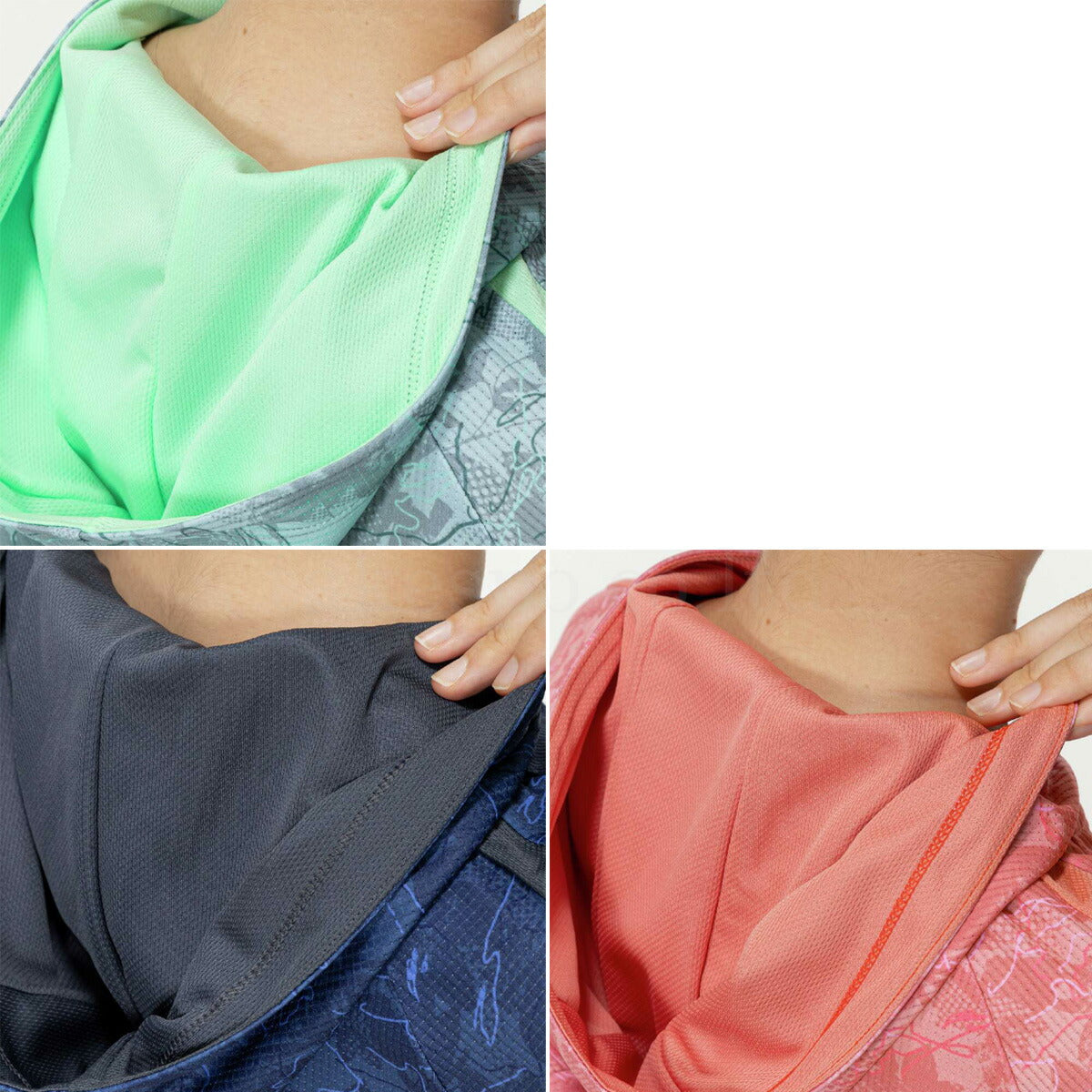 | 生地感 | 薄手で軽量、高通気、さらっとした肌触りで軽い着心地のスクウェアメッシュ素材のトレーニングウェアです。汗をかいてもべたつきなく快適な着心地です。 |