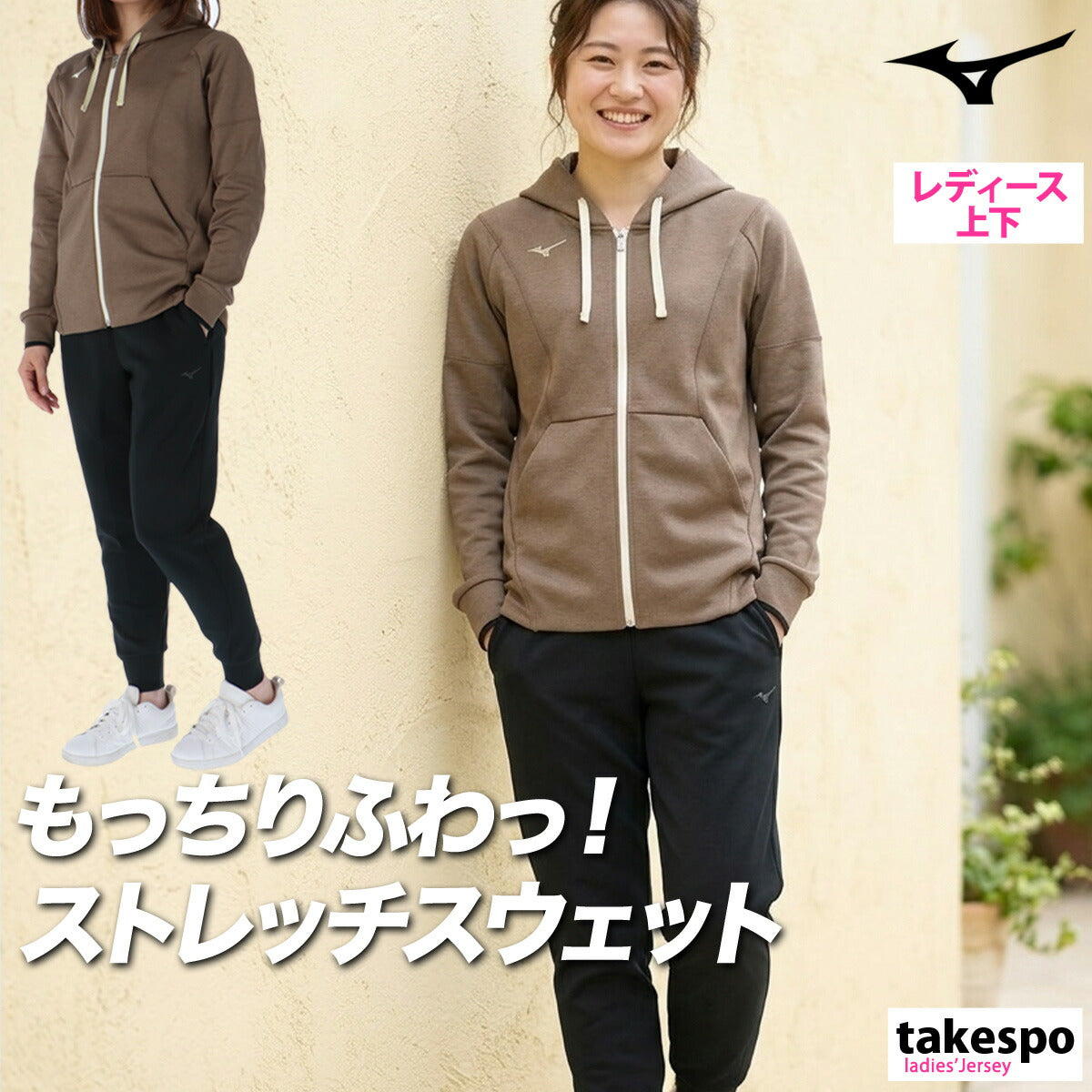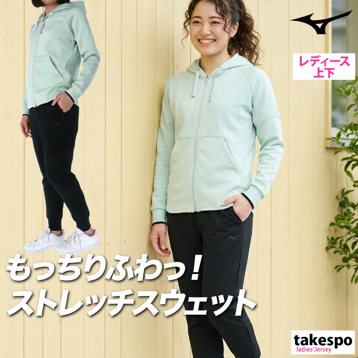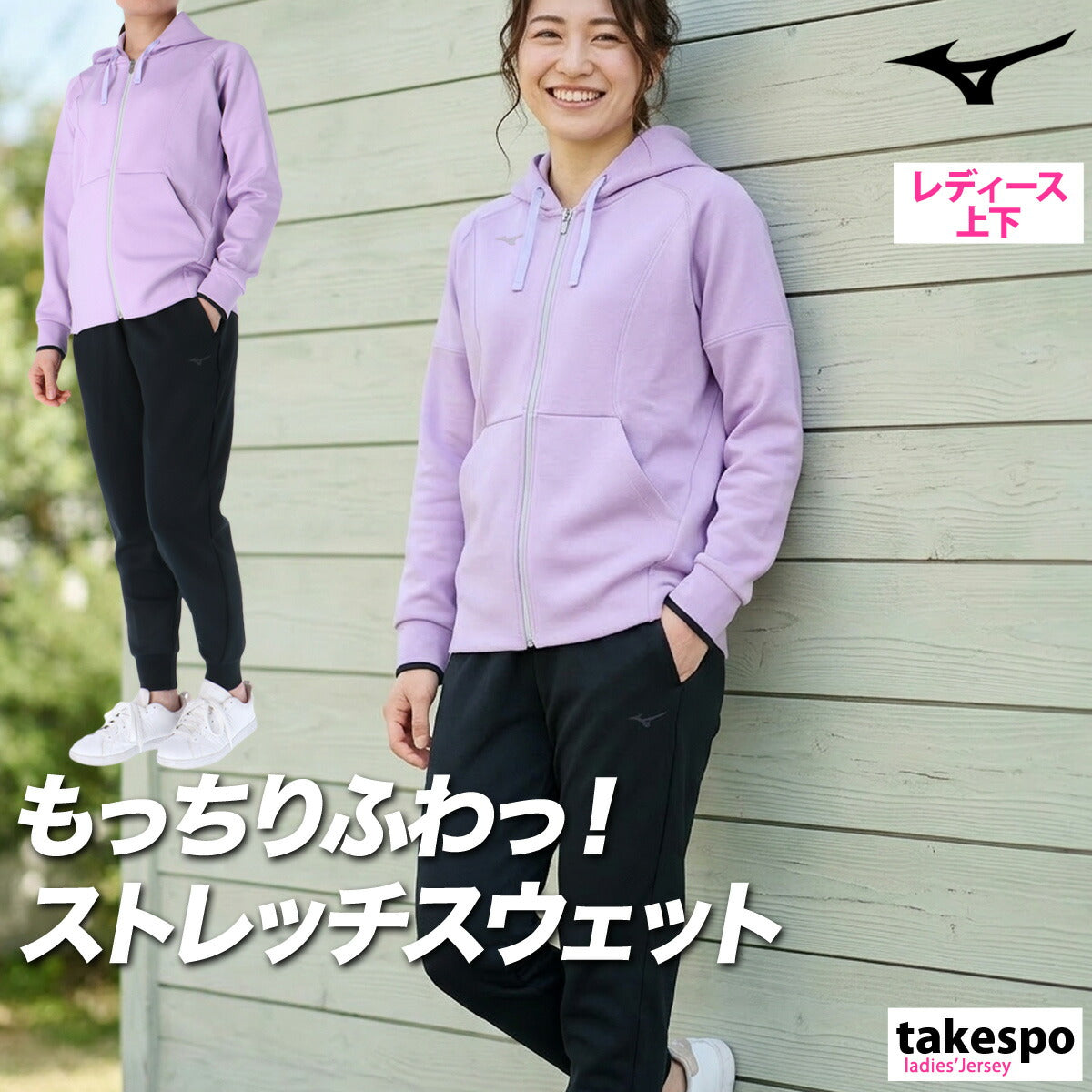 ミズノ スウェット 上下 レディース ストレッチスウェット ブラック グレー ホワイト パープル ブラウン ピンク グリーン ベージュ 32MCC330