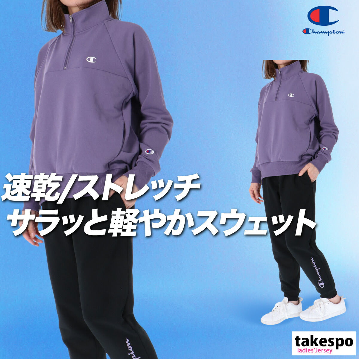 チャンピオン スウェット 上下 レディース テックウィーブ グレー パープル ブラック CWCS002