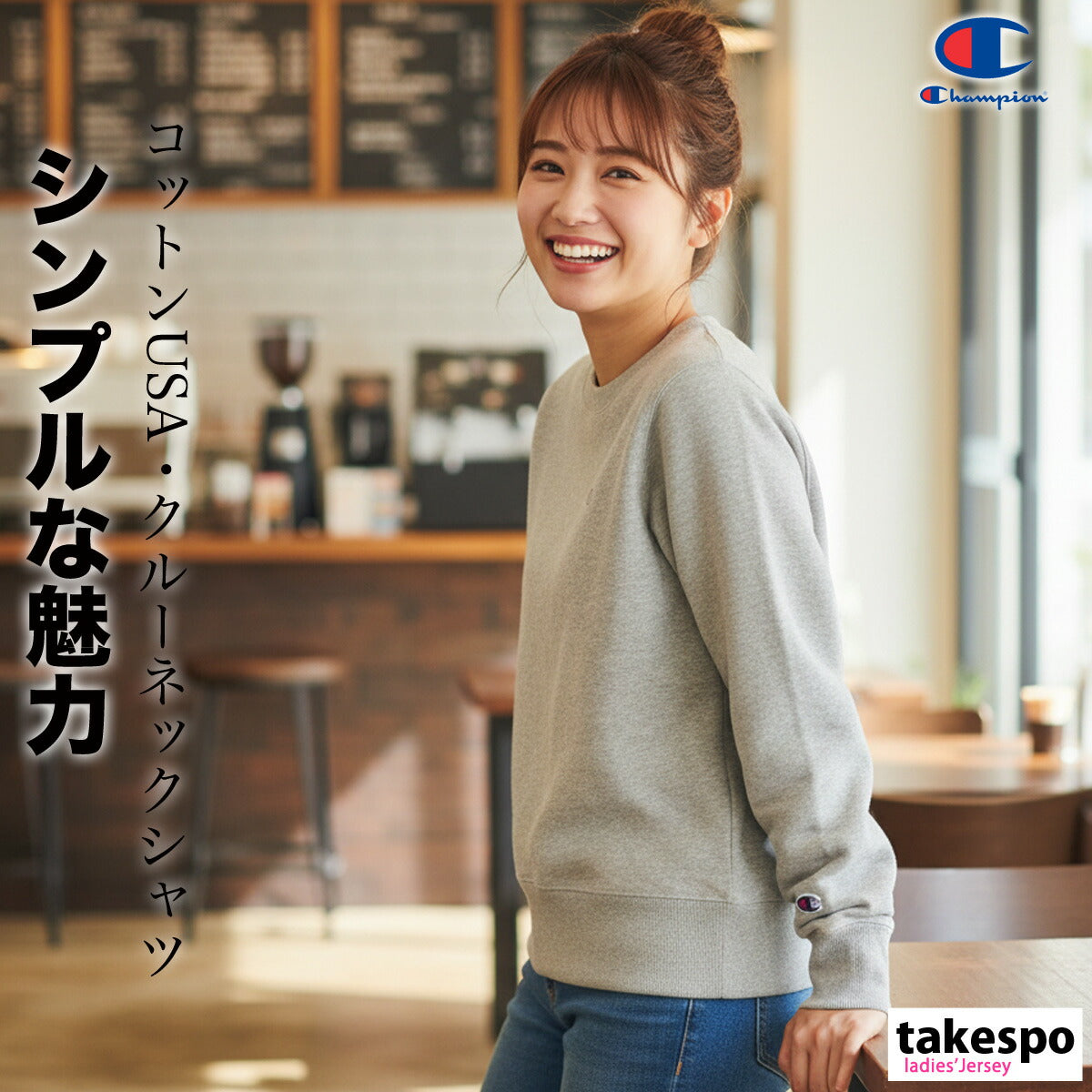 チャンピオン スウェットシャツ レディース クルーネックスウェットシャツ ホワイト グレー ブラック ネイビー グリーン レッド ブラウン ベージュ ピンク CWY018