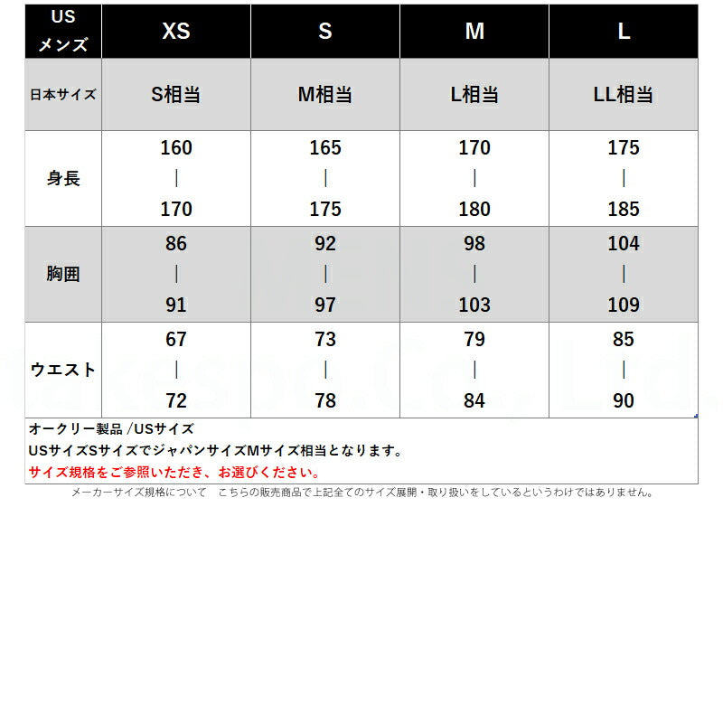 | サイズ | 【メーカー規格(cm)】 S(日本M相当) : 身長165-175、胸囲92-97、ウエスト73-78 M(日本L相当) : 身長170-180、胸囲98-103、ウエスト79-84 L(日本LL相当) : 身長175-185、胸囲104-109、ウエスト85-90 XL(日本3L相当) : 身長180-190、胸囲110-115、ウエスト91-96 【参考実寸値(cm)】 S(日本M相当) : 着丈70、身幅50、股下72、総丈95、ウエスト幅39、ウエスト最大伸長48 |
