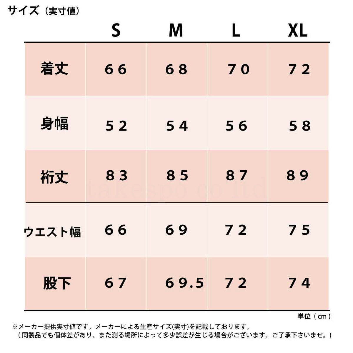 | サイズ | 【メーカー規格(cm)】 Mサイズ : 身長165-170 Lサイズ : 身長170-175 XLサイズ : 身長175-180 【参考実寸値(cm)】 Mサイズ : 着丈64、身幅53、股下72、総丈92 |